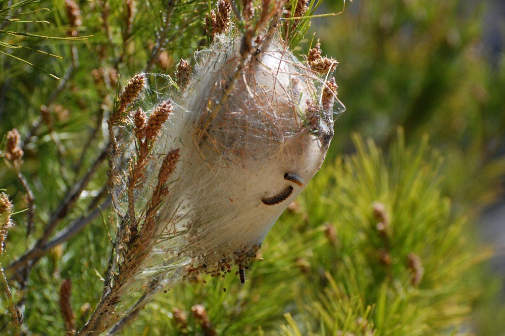 Horrible Pine processionary caterpillars getting back into their nest