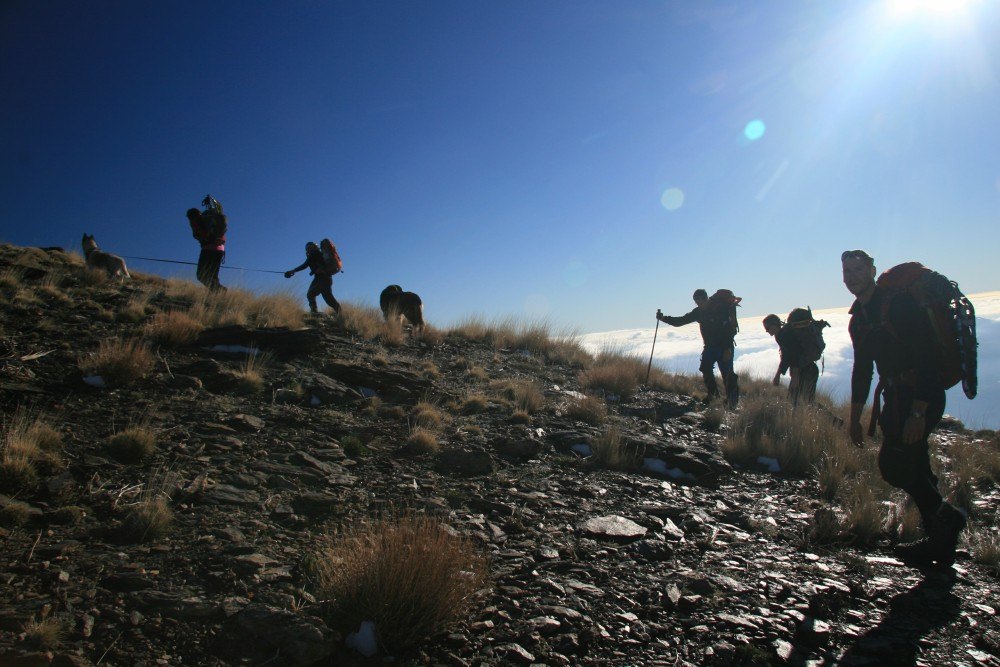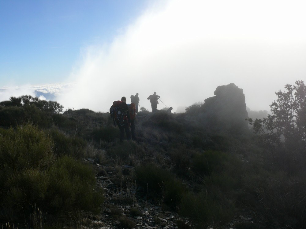 Here are most of us heading up to the snow above the clouds