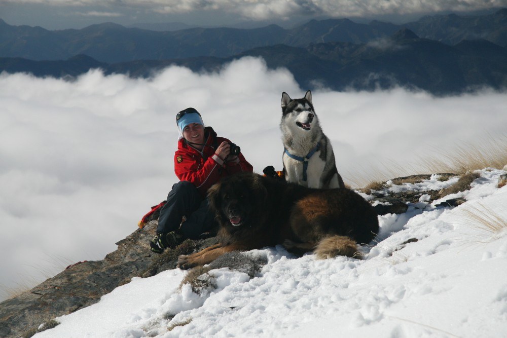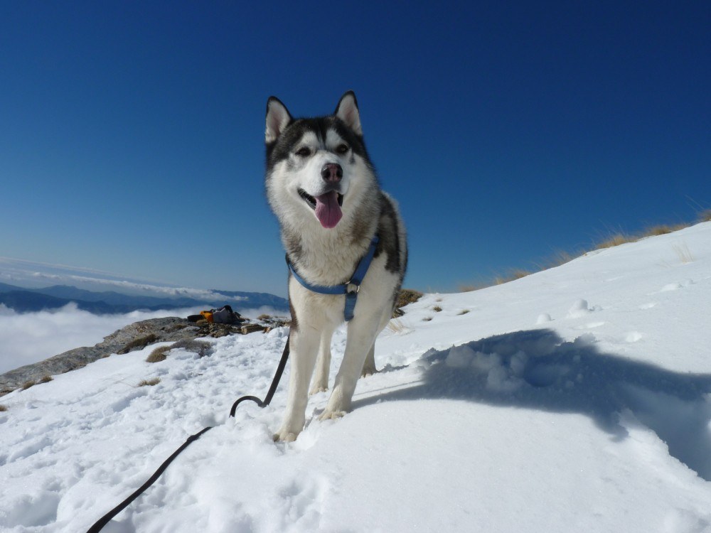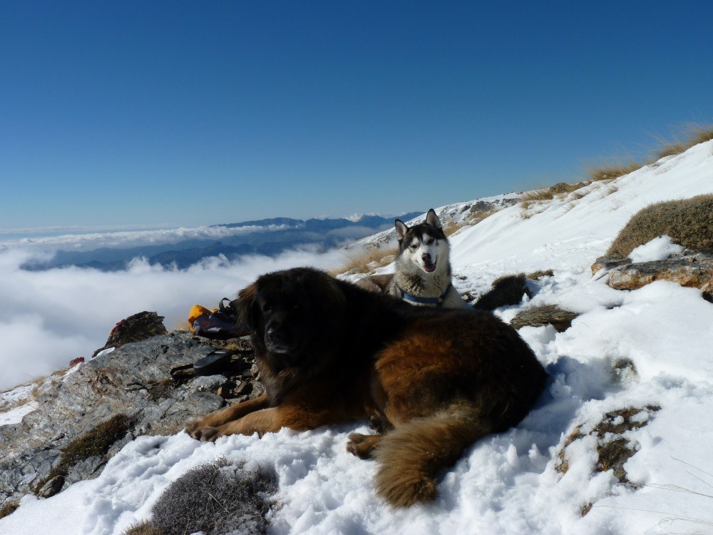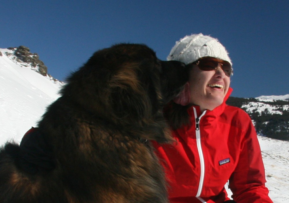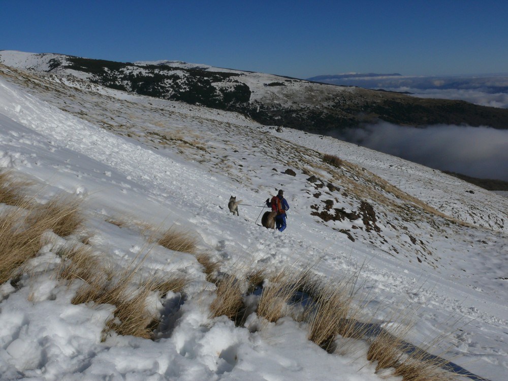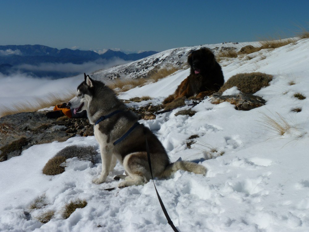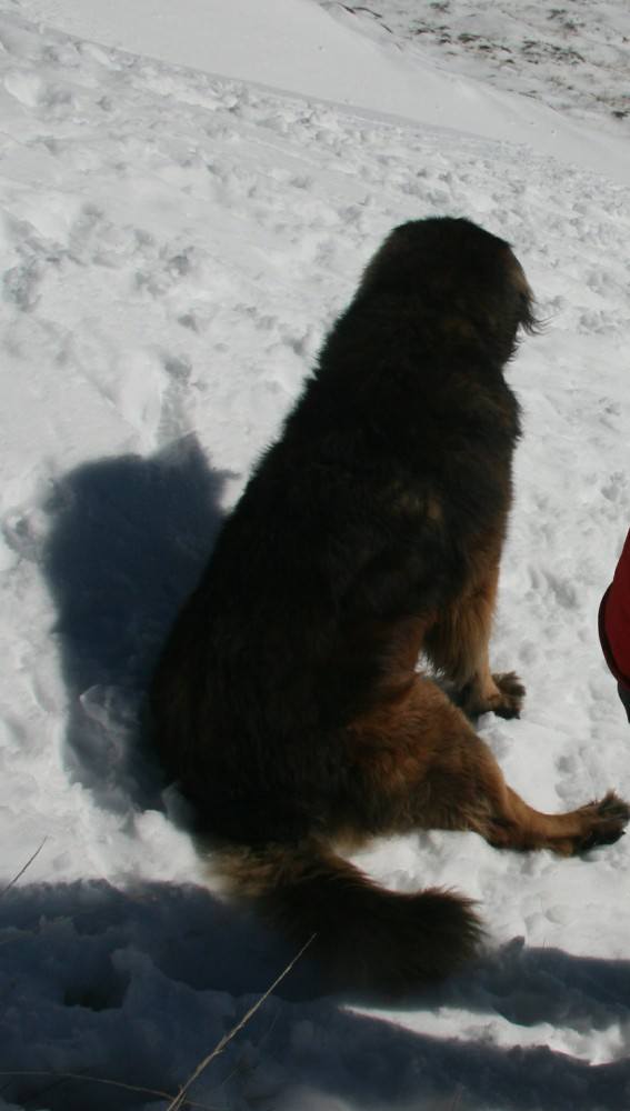 We stared to head down the mountain, hu’mum let hu’dad take me for this bit, wise mum. We had fun though, hu’dad sat down in the snow, I pulled him down hill and Bruno chased us.