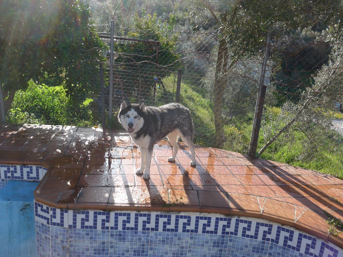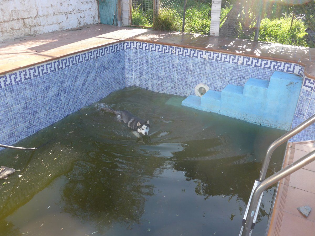 As you know we had a lot of rain during March. The swimming pool was empty before then. One day after we returned from our walkies Arko decided it would be a great idea to take a swim in the dirty water in the swimming pool. Hu'mum couldn't believe it, it's the first time she has seen him actually swim.