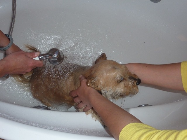 Khumbu and Bruno were a real pain, they would not leave me alone. I think they thought there was a new pup in the house. Khumbu kept trying to get me to play, does he not realise the trauma ive just been through. Bruno just ran around after me with a strange squeak coming from him!! Ive had to be very harsh on Bruno because he was a real pest. So it seems this is my new look, what do you think of it??