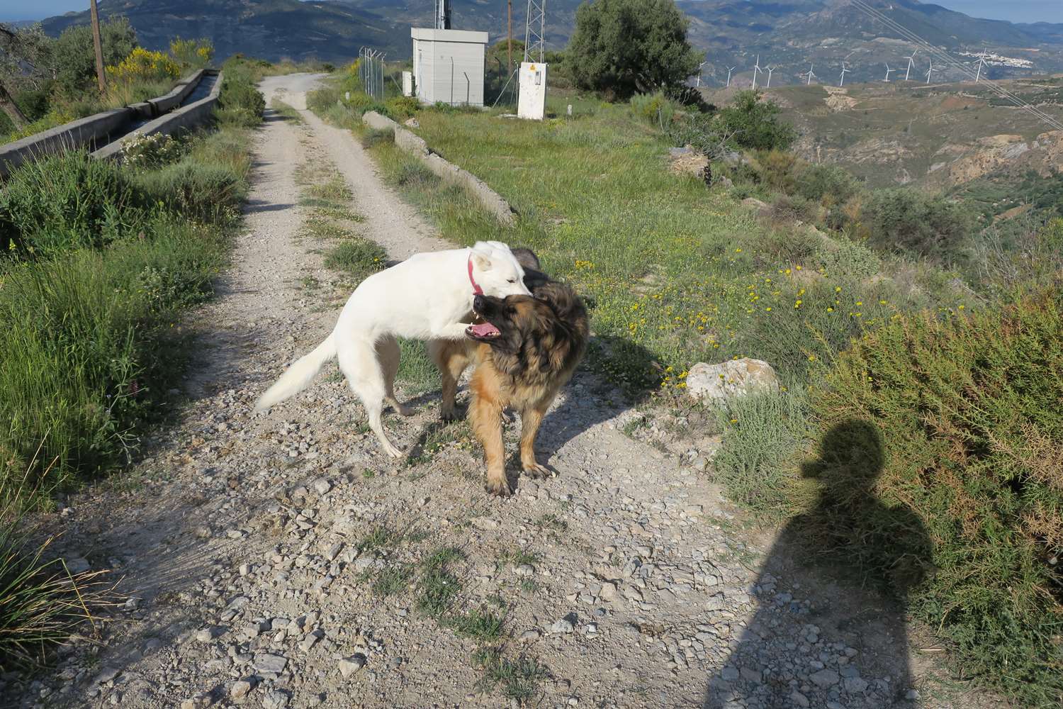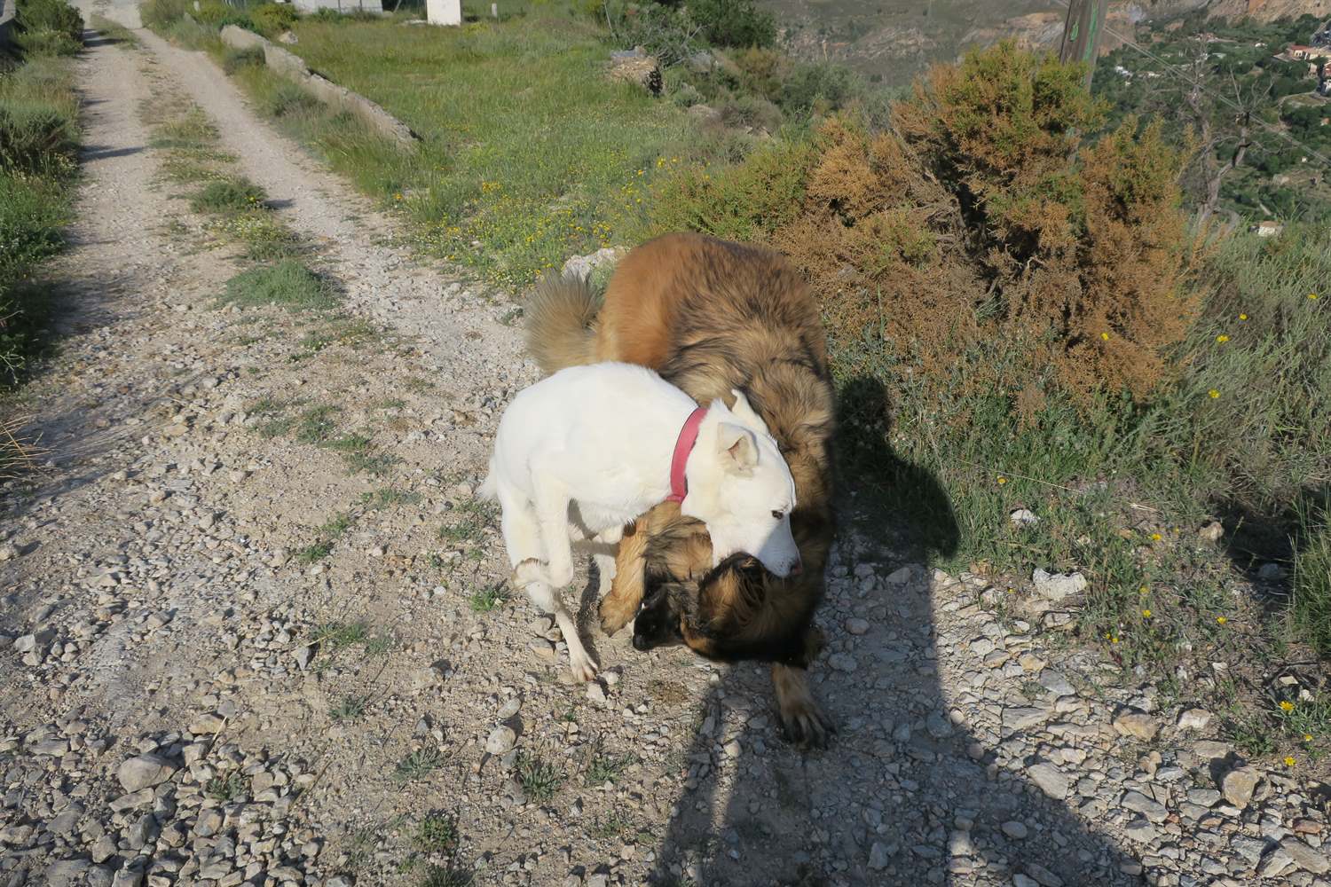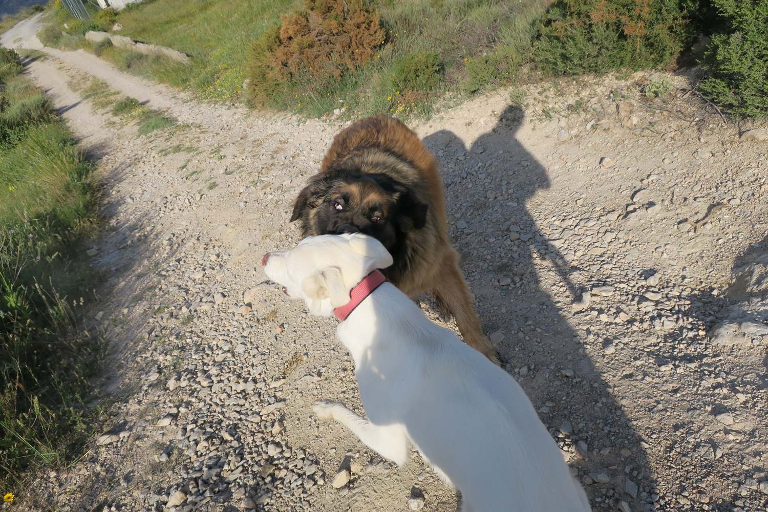 It appears this walkies was about us having fun, hu'mum finding a new setting on the camera and Rita ambushing Kyra. There is no rhyme or reason as to why Rita ambushes Kyra, some days it happens, some days it doesn't but Rita has great pleasure it in and totally looses the plot in the process. Kyra, I think, wishes the annoying skinny big eared white dog would stop behaving like a loonie.