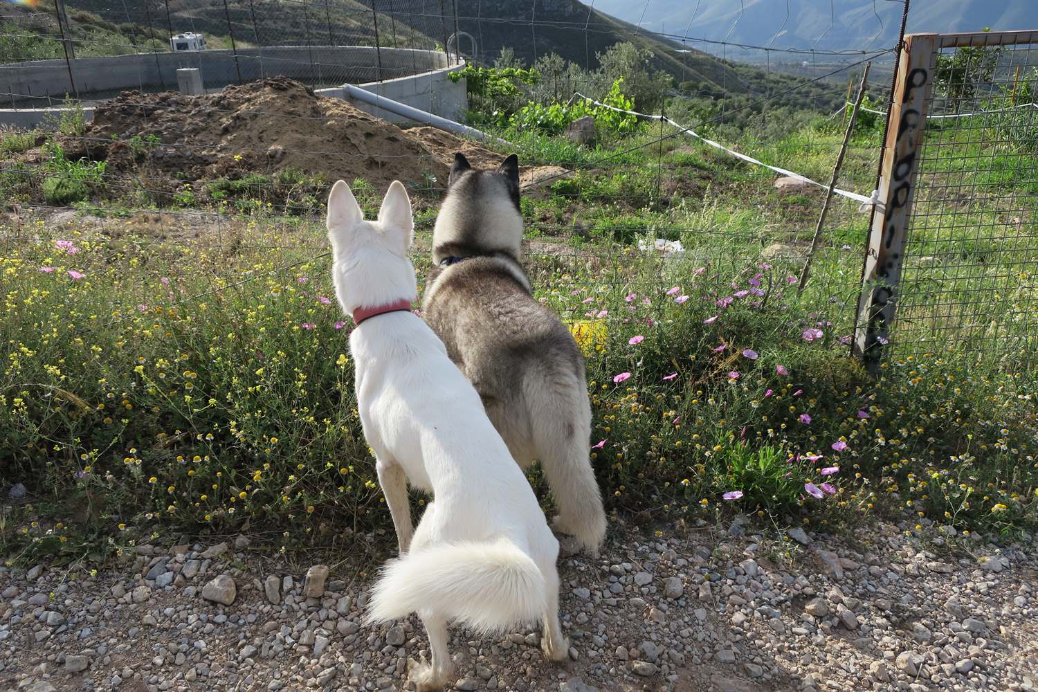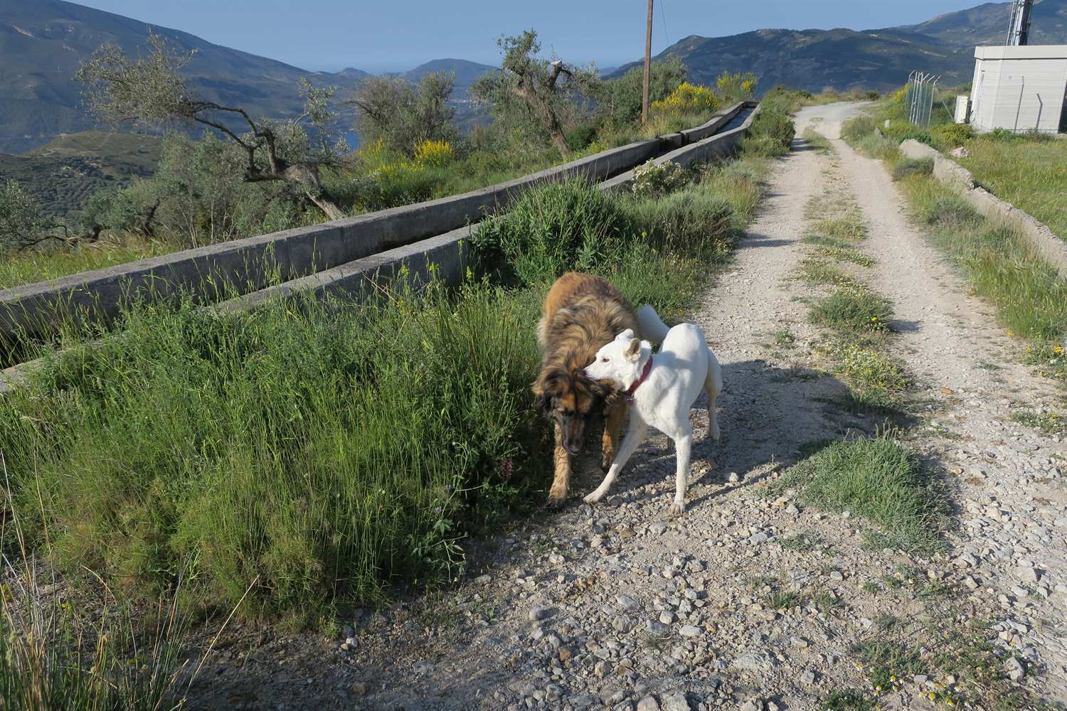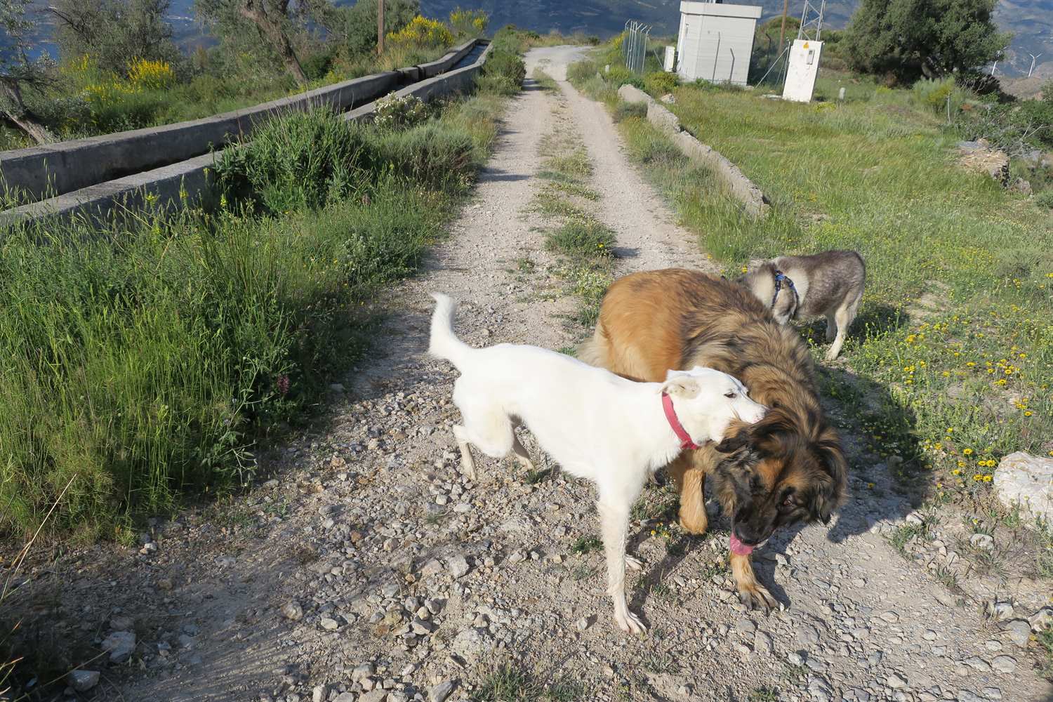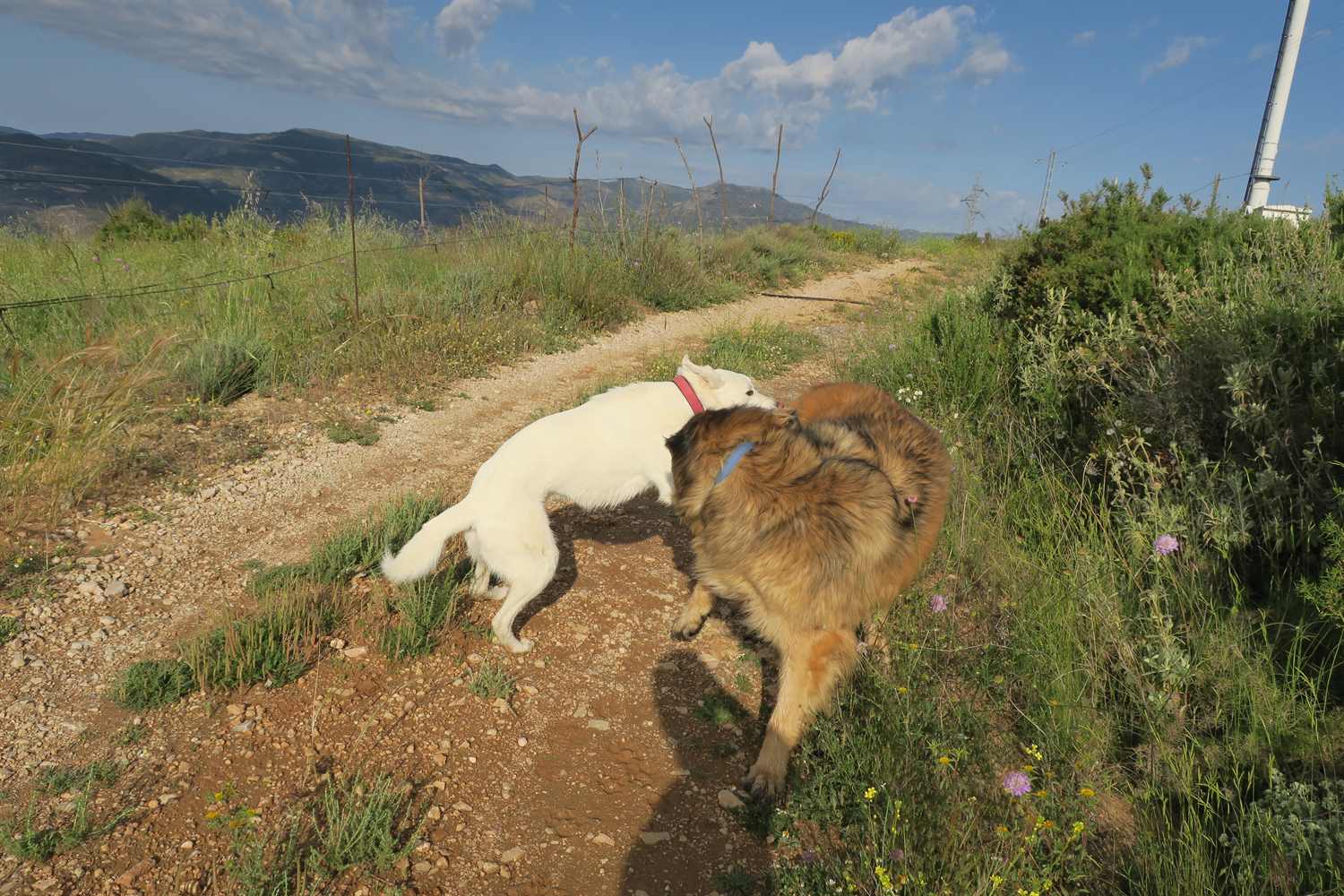 It appears this walkies was about us having fun, hu'mum finding a new setting on the camera and Rita ambushing Kyra. There is no rhyme or reason as to why Rita ambushes Kyra, some days it happens, some days it doesn't but Rita has great pleasure it in and totally looses the plot in the process. Kyra, I think, wishes the annoying skinny big eared white dog would stop behaving like a loonie.