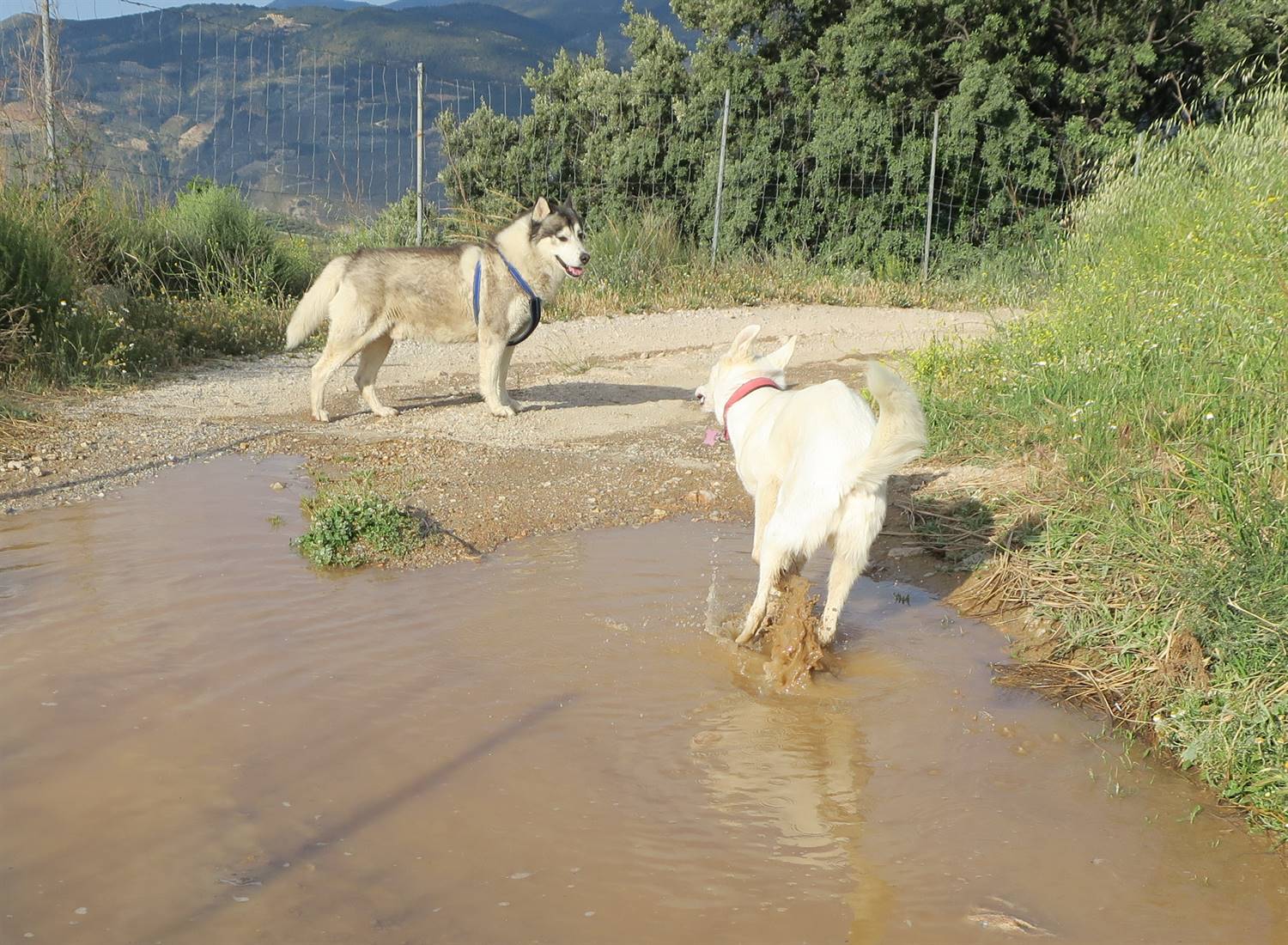 Rita running through a puddle