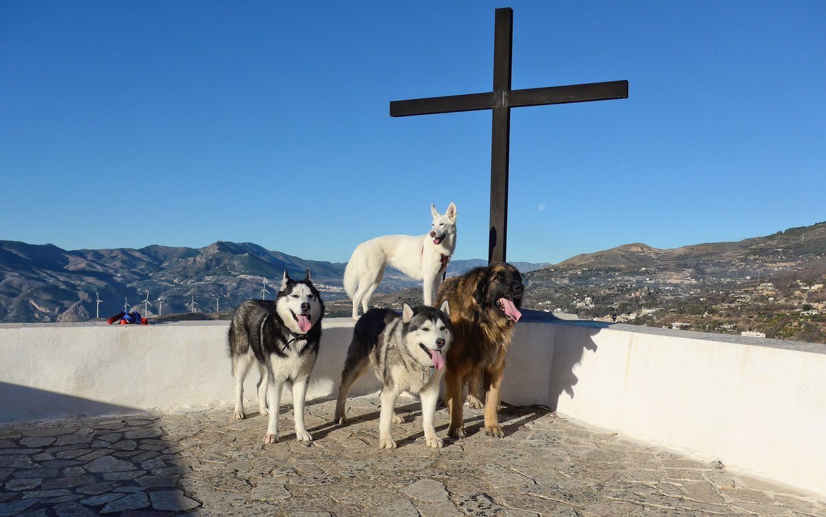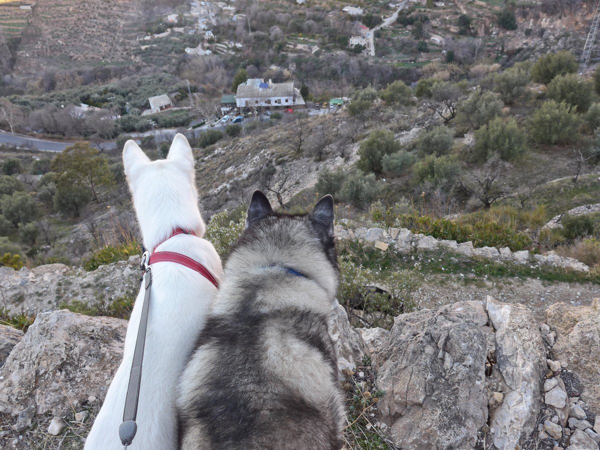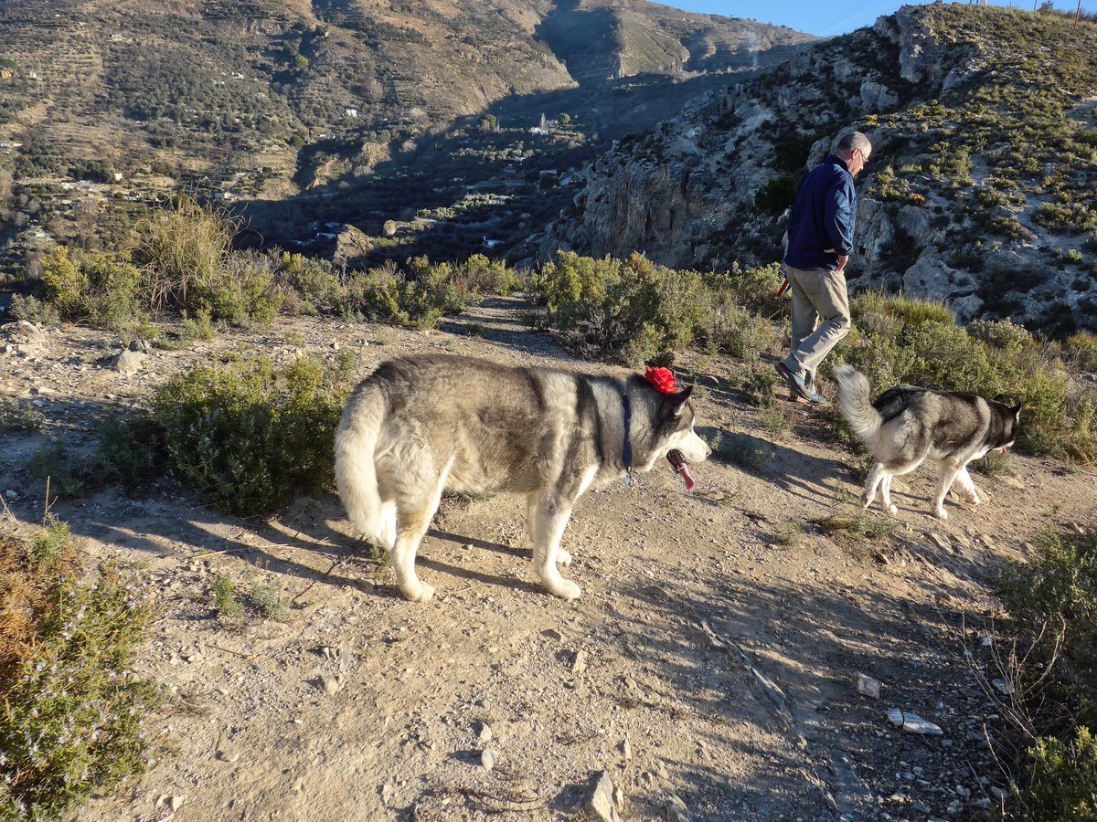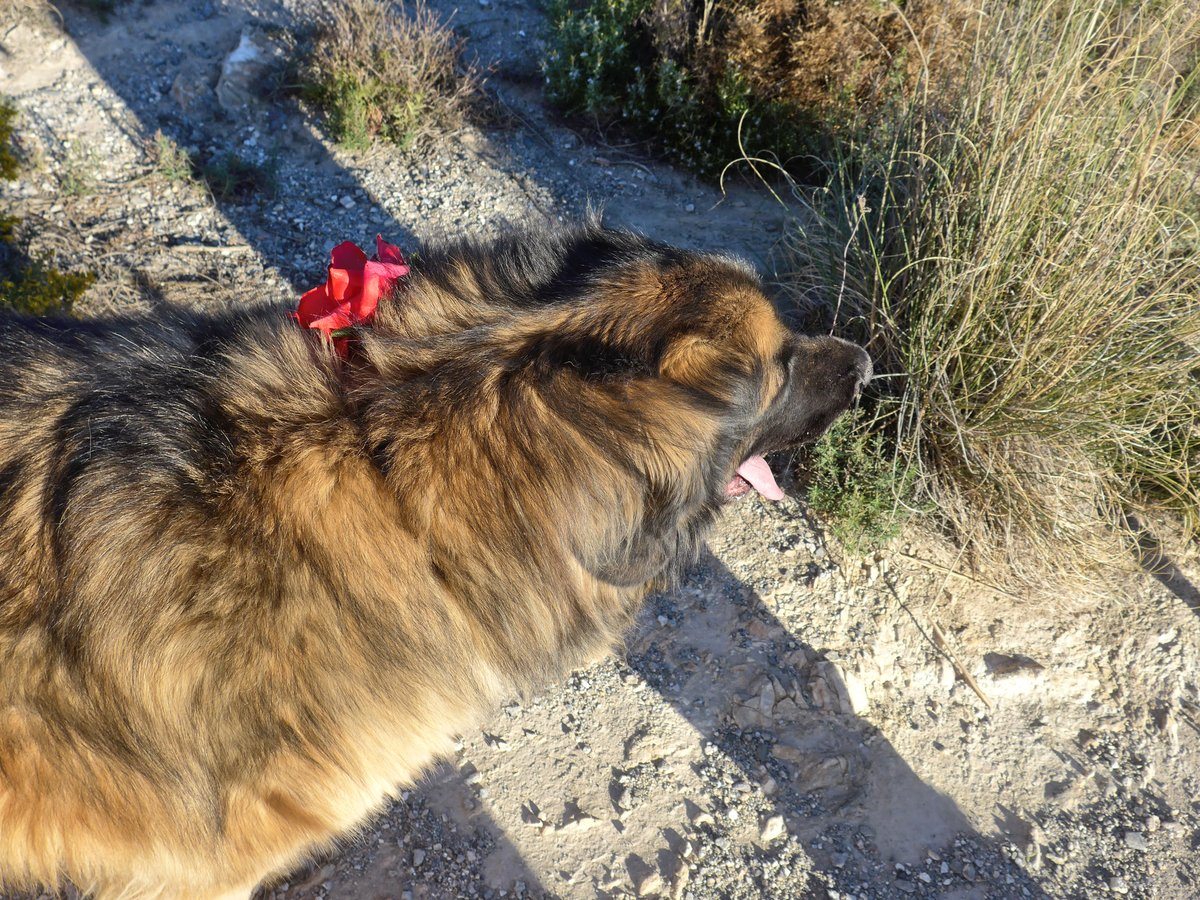 So hu'dad joined us on a walk today and we found a flower to help us celebrate Khumbu's birthday yesterday. The flower was from the Ermita and was just blowing around, it was a plastic one. Kyra and Khumbu both tried it out.