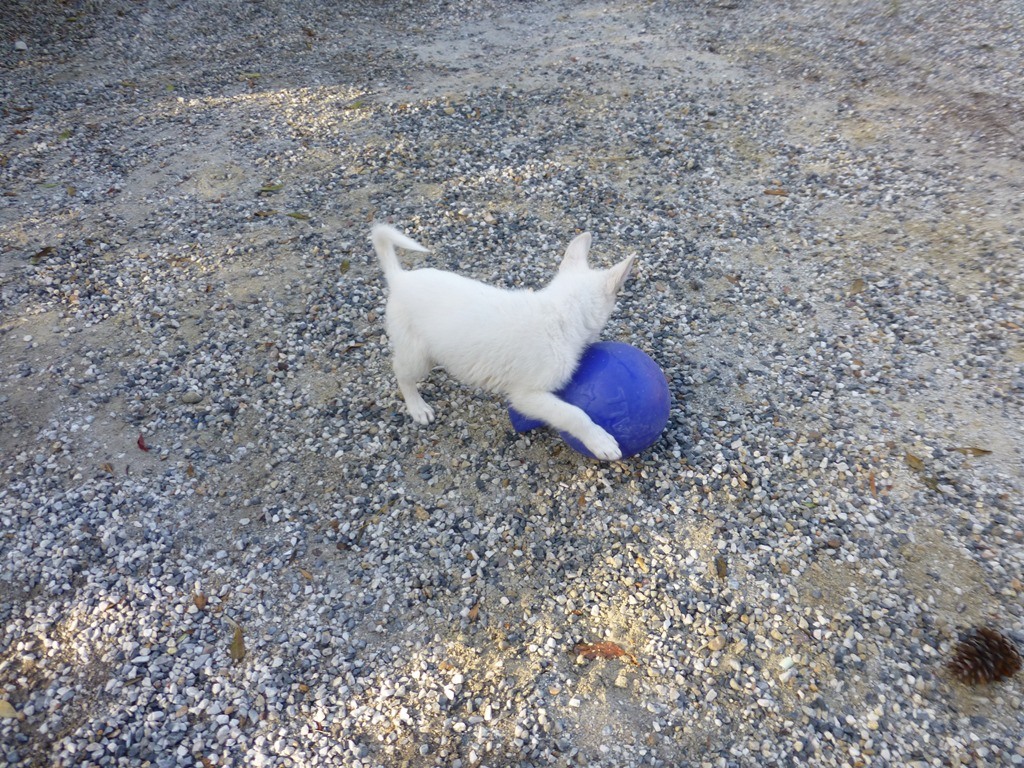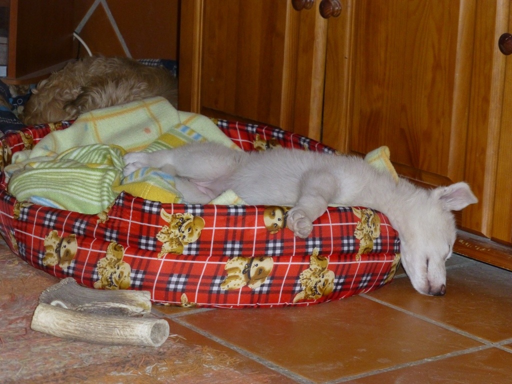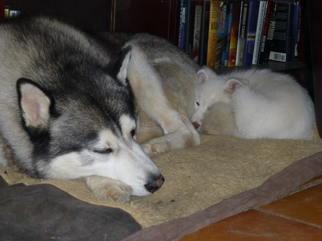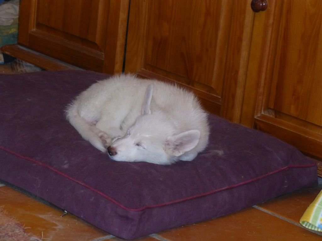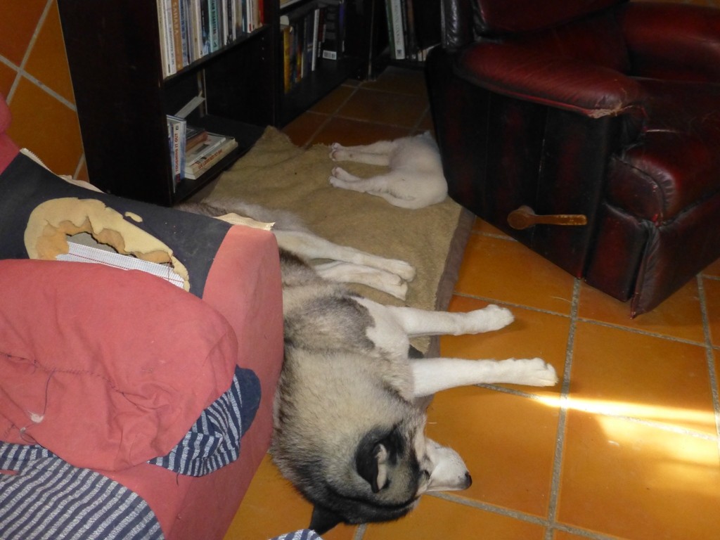 She has now been with us 11 days, is around 11/12 weeks old and has settled into life here very well. She plays most of the time with Kyra, she doesn't yet understand husky play even though I keep trying to teach her and Tapa is just dead grumpy with her.