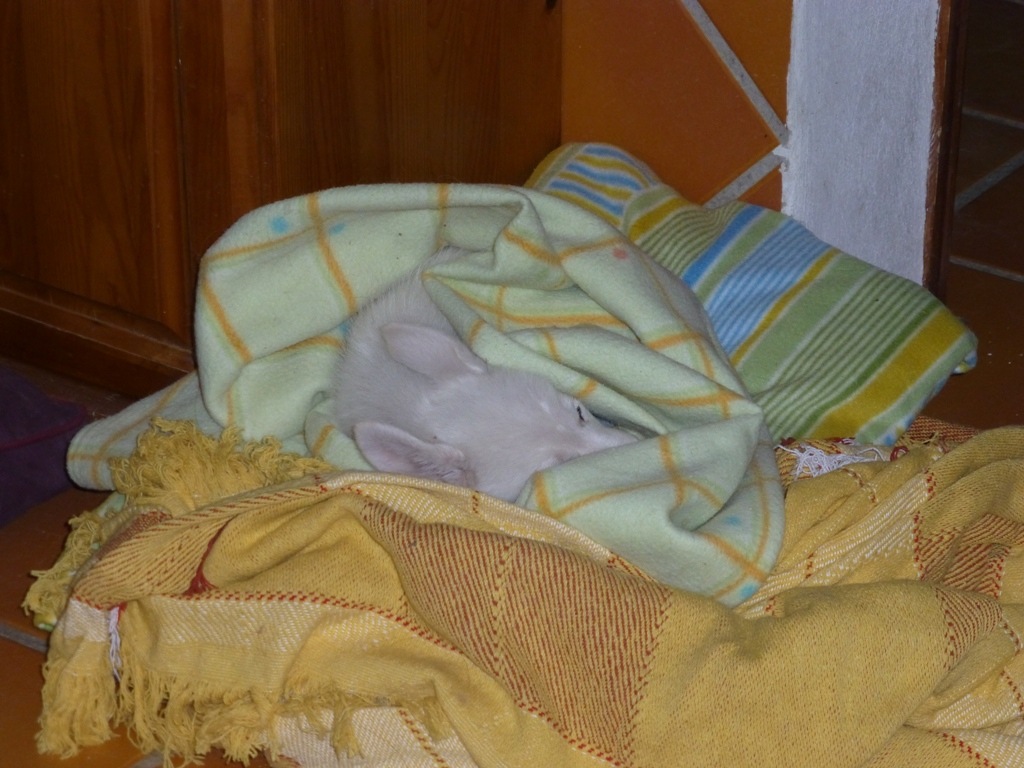 We have a new member of the pack. Rita and her brother were handed in to Paws for Thought after they had been rescued from a cage in the campo where they were expected to live in their pee and poop, the owners only ever came up every three to five days to give water and food. They were covered in fleas and riddled with worms. For sure these two young pups would not have survived long.