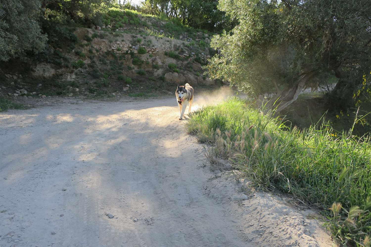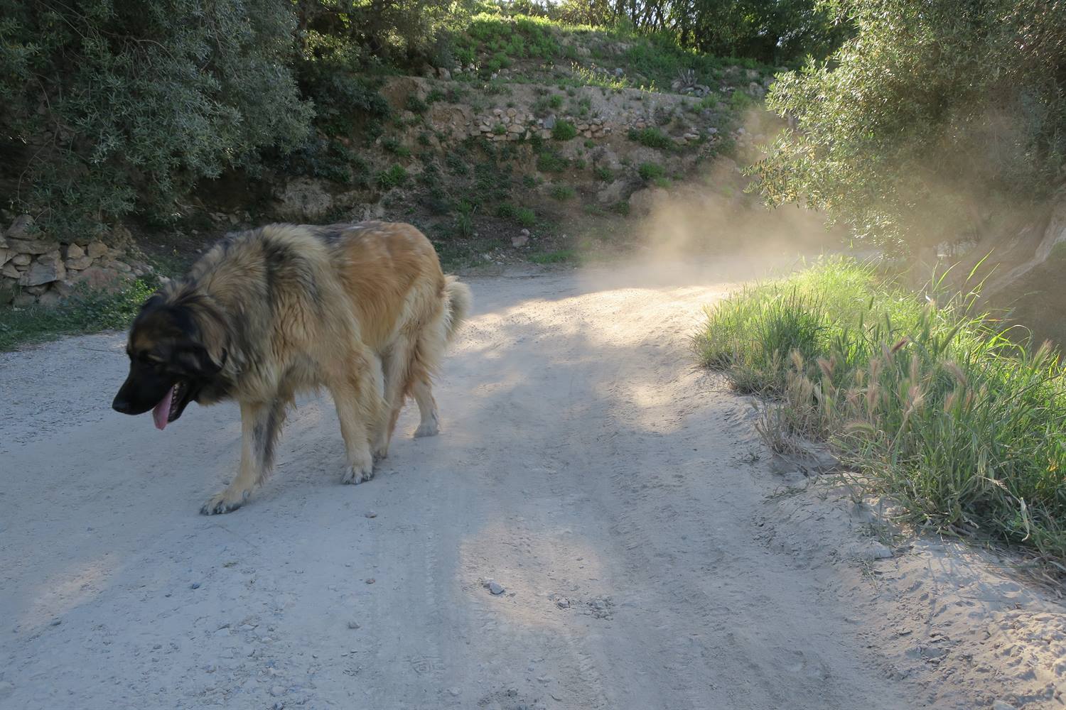 Coming around the corner kicking up dust