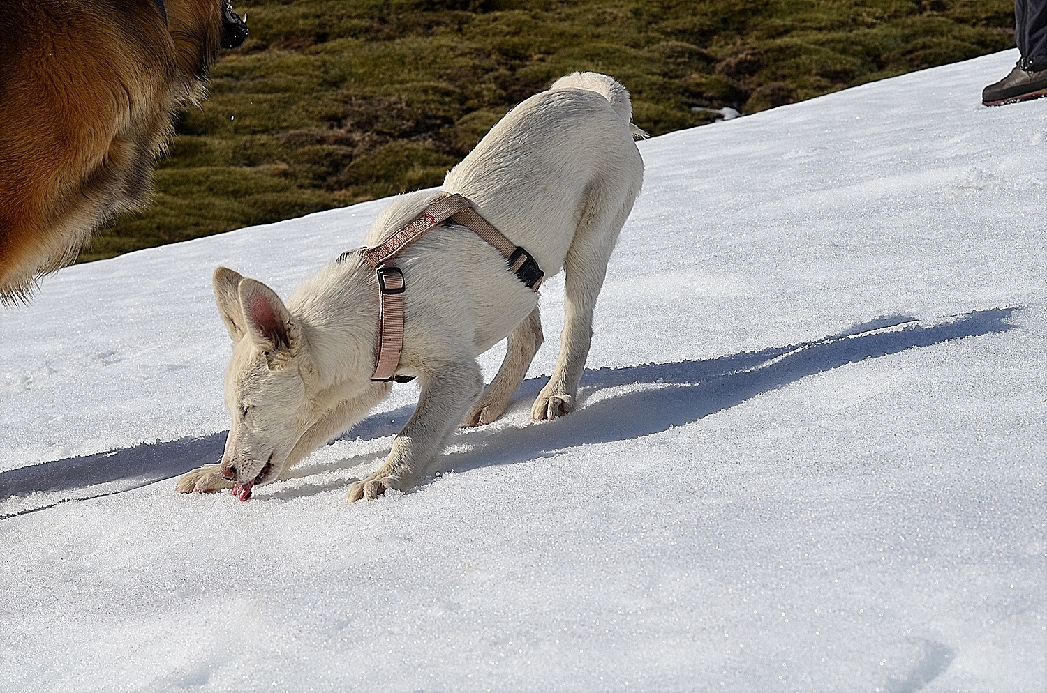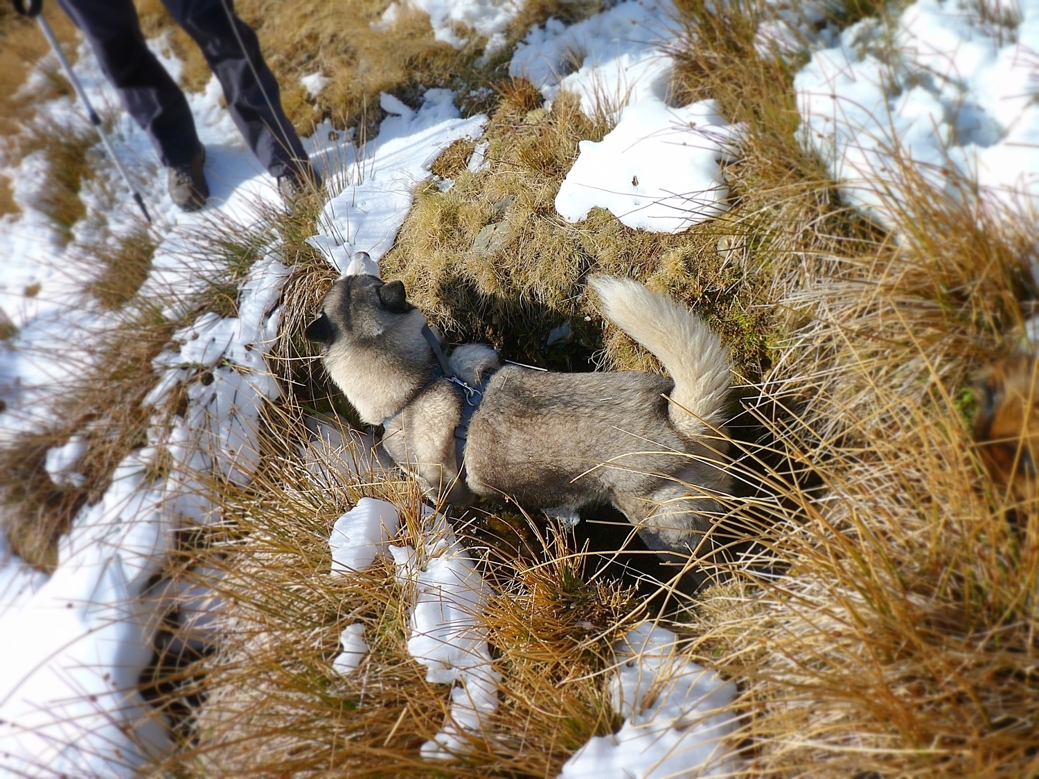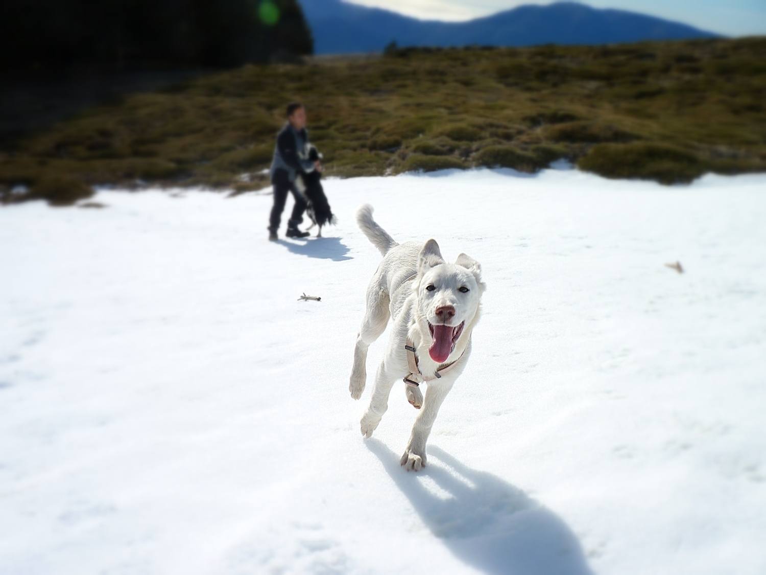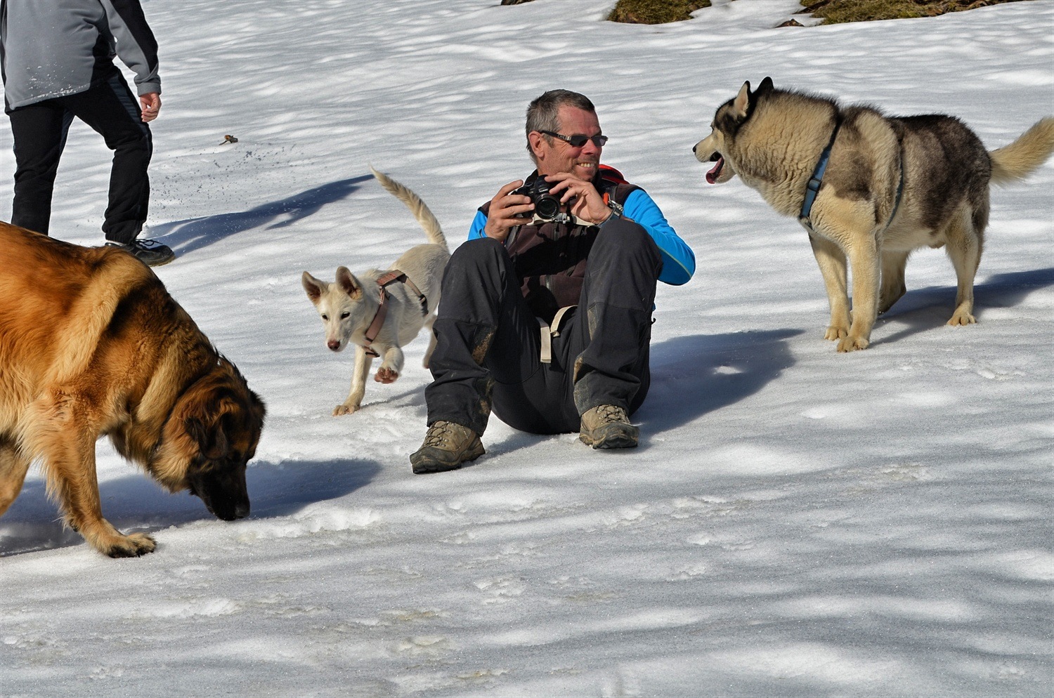 It's been a long time coming but eventually the hu'parents took us to the snow. We have had a serious lack of precipitation this winter so far and what snow has fallen has melted fast and a lot of what is left if ice and not good for us doggies. But we thought we should go to our favourite place and hope that we would find snow and that it would be soft enough for us to play in. This was Rita's first experience of snow and we were all looking forward to see what she would think of it. There were four humans and four doggies. The humans were the hu'parents, Pepe and Ian, the doggies were me (Khumbu), Kyra, Rita and Meg (the Border Collie). It goes without saying that we all had a blast as I'm sure you will see by all the pictures, there were humans and dogs everywhere. Sorry but there are a lot of photos.