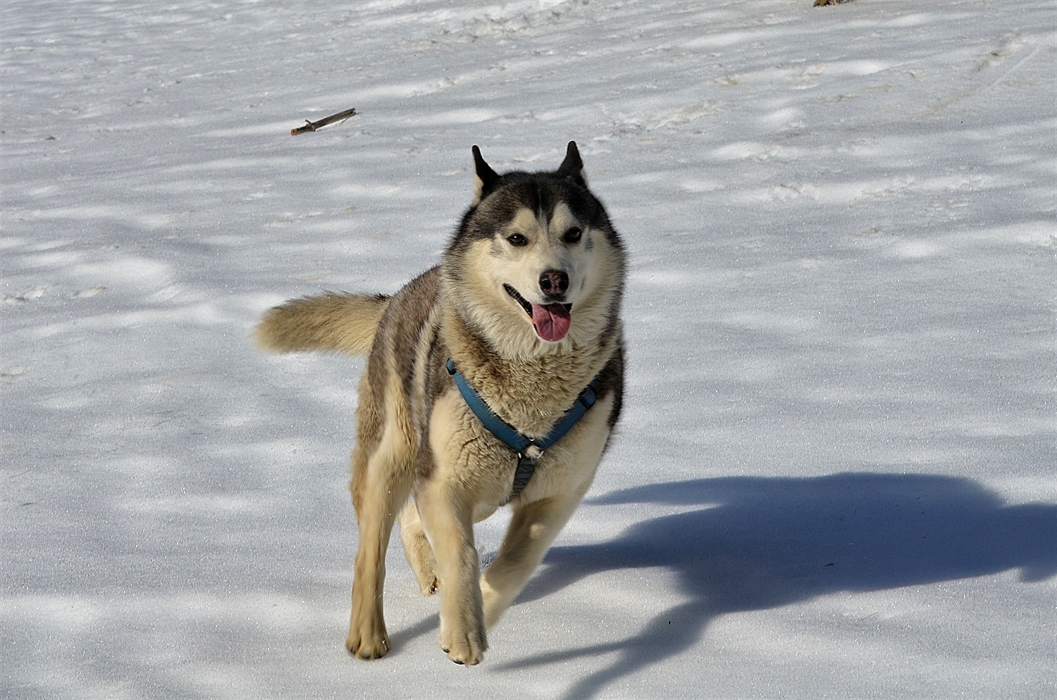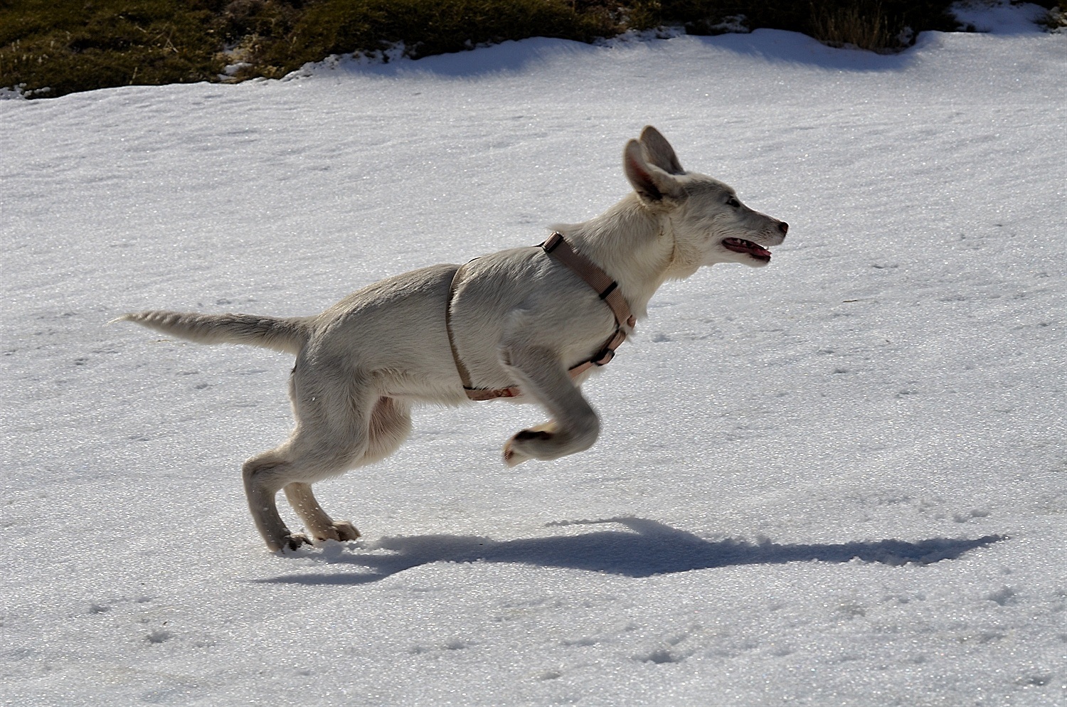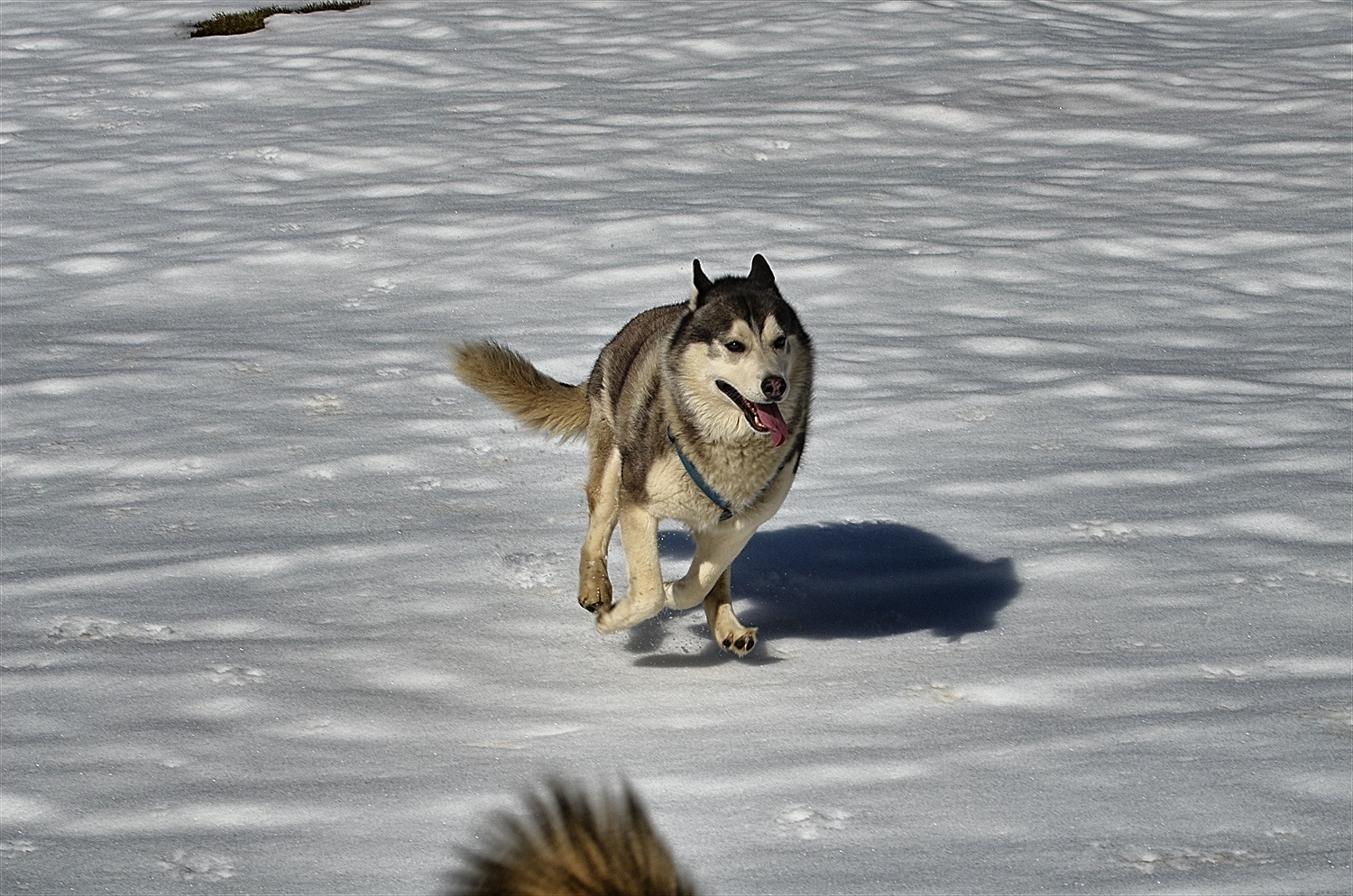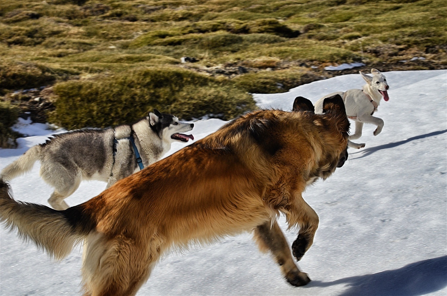 It's been a long time coming but eventually the hu'parents took us to the snow. We have had a serious lack of precipitation this winter so far and what snow has fallen has melted fast and a lot of what is left if ice and not good for us doggies. But we thought we should go to our favourite place and hope that we would find snow and that it would be soft enough for us to play in. This was Rita's first experience of snow and we were all looking forward to see what she would think of it. There were four humans and four doggies. The humans were the hu'parents, Pepe and Ian, the doggies were me (Khumbu), Kyra, Rita and Meg (the Border Collie). It goes without saying that we all had a blast as I'm sure you will see by all the pictures, there were humans and dogs everywhere. Sorry but there are a lot of photos.