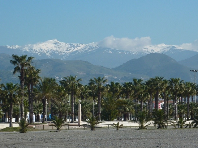 Turn your back to the sea & you can see the snowy Sierra Nevada. Lanjaron sits below the peak on the left