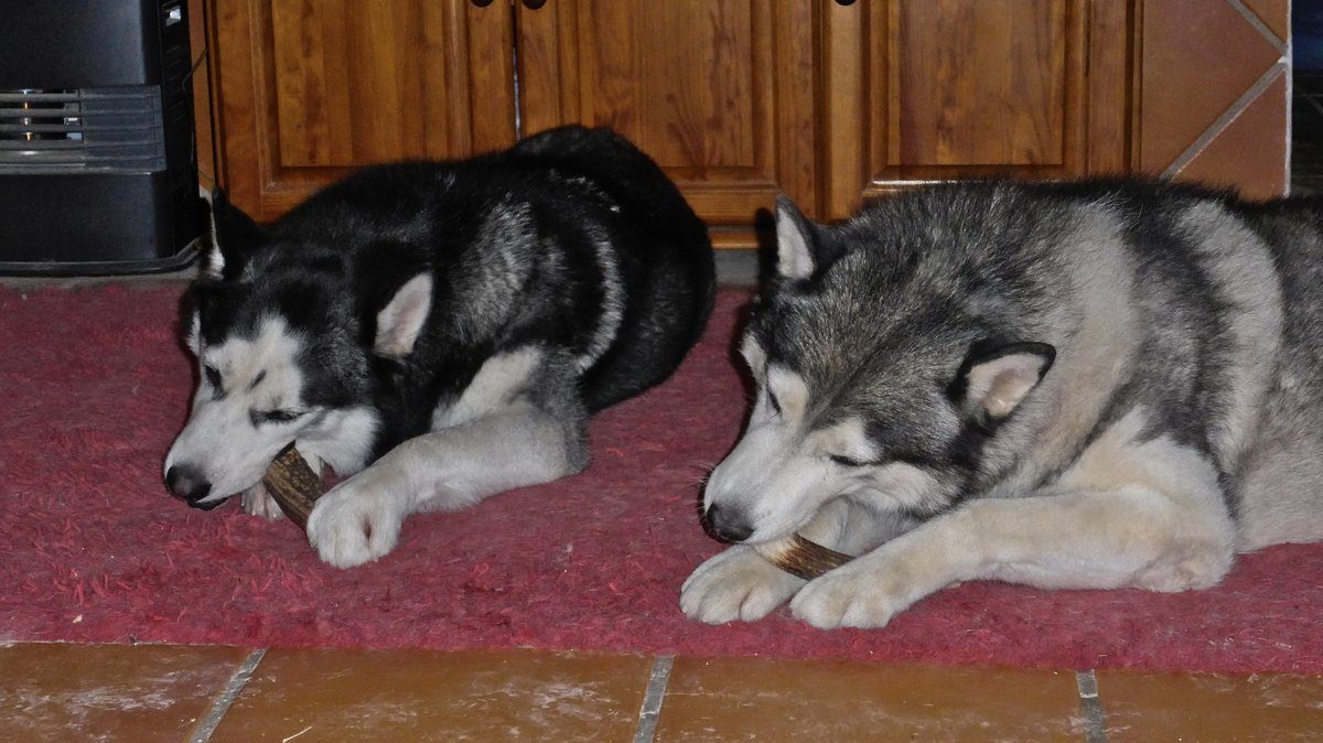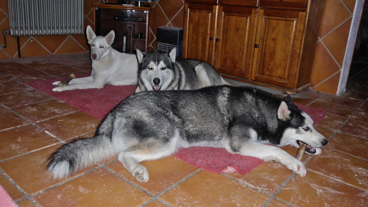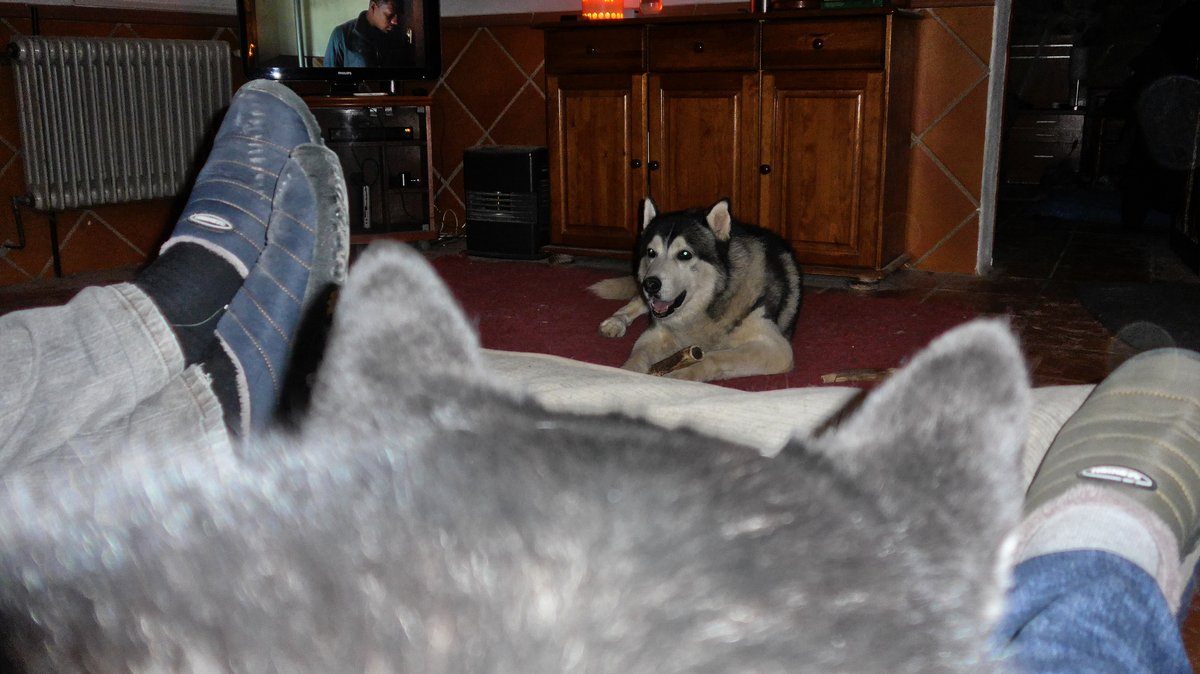 Khumbu took up chewing again, Arko came for snuggles and the girls were back in their usual positions